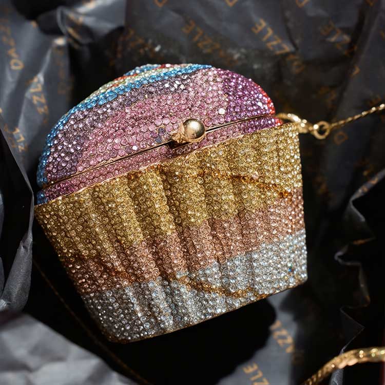 Introducing “Sprinkle,” a charming cupcake-inspired clutch crafted to turn heads with its radiant stone detailing. Petite in size but bold in personality, it pairs playful elegance with striking sparkle — the perfect companion for parties, special celebrations, and any moment that calls for standout style.