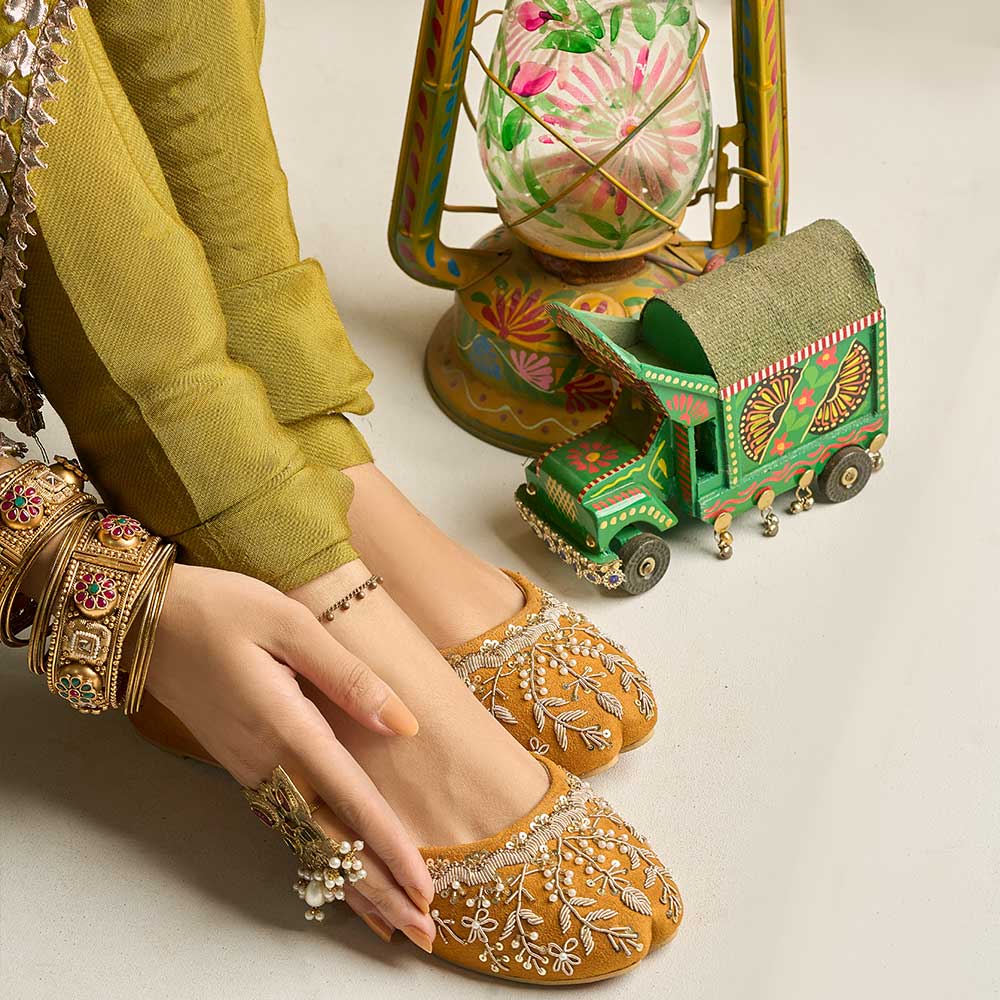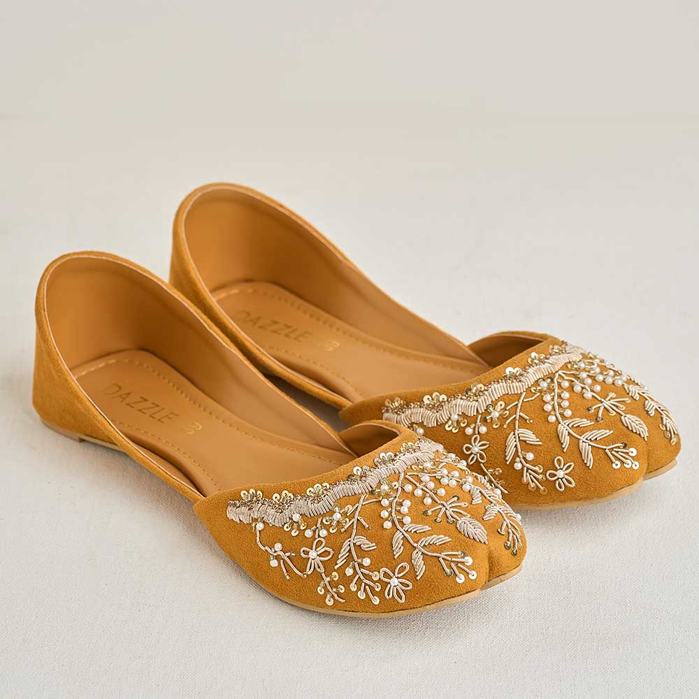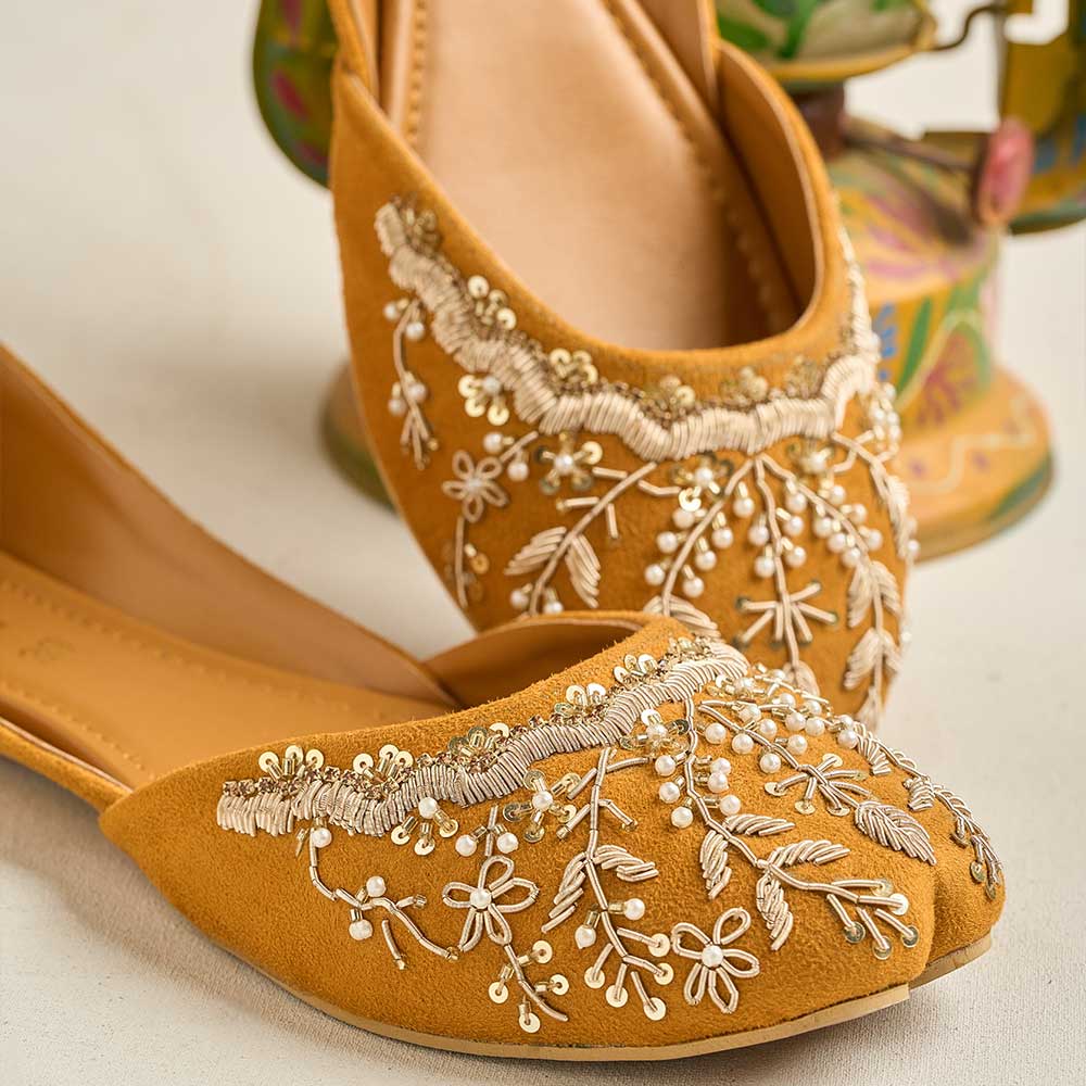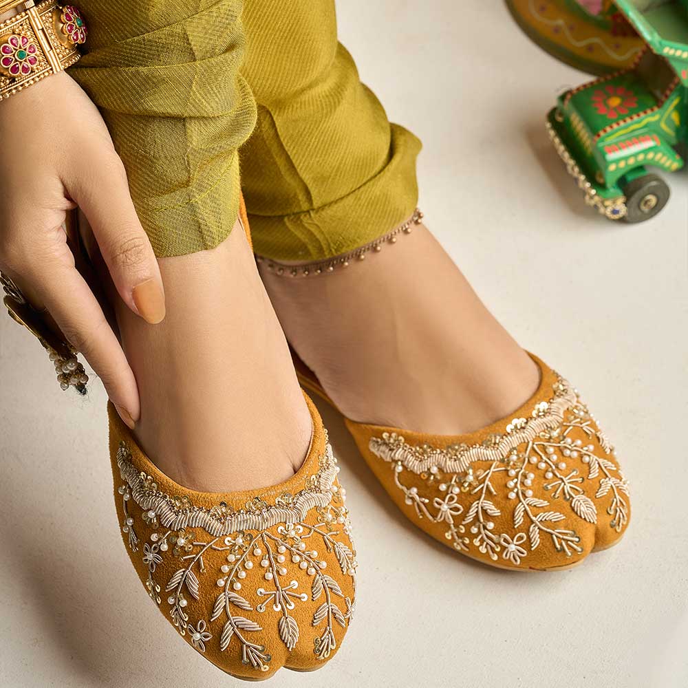 Step into elegance with “Regina” a stunning mustard velvet pair adorned with delicate embellishments. Designed for comfort and grace, it’s the perfect blend of luxury and ease for every occasion.