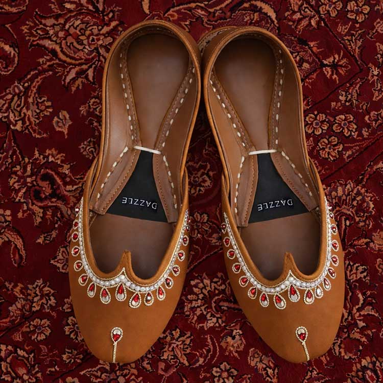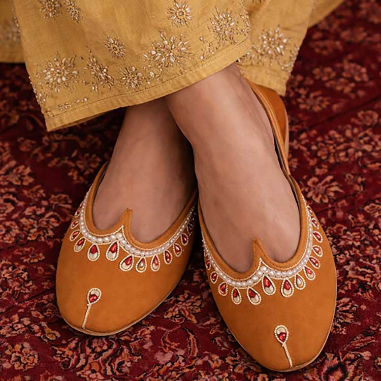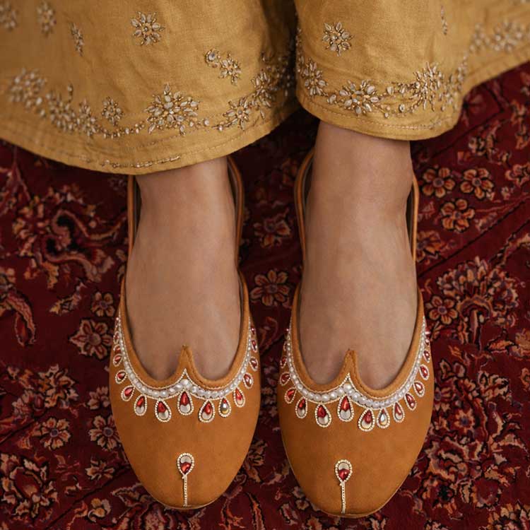Add a graceful touch to your look with this beautifully detailed flat, featuring elegant embellishments and a classic silhouette. Designed for comfort and style, it’s perfect for festive occasions and everyday ethnic wear.
