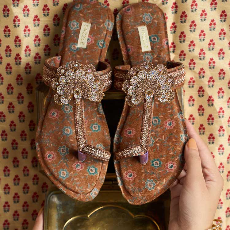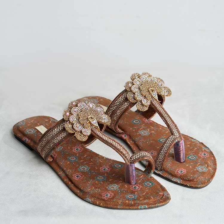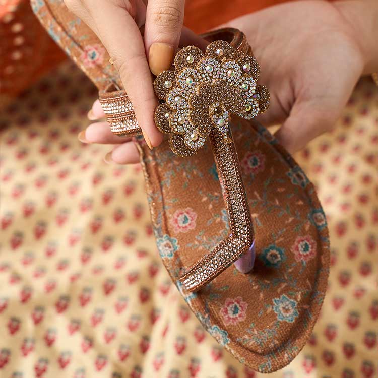 The Moor kolhapuri comes with a printed insole, elegant fancy strings, and a 3D flower detail for a stylish look. Designed for comfort and durability, it's a perfect pick to add a touch of charm to any outfit.