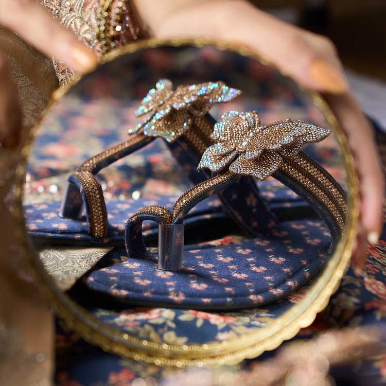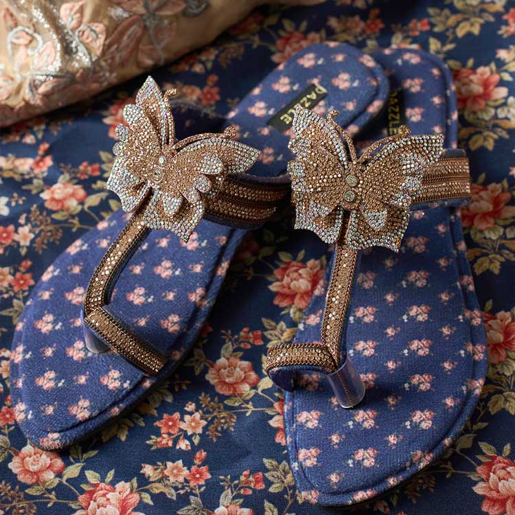 The Titli (Blue) kolhapuri features a vibrant blue design with a printed insole, fancy strings, and a 3D butterfly for a playful touch. Comfortable and stylish, it's perfect for adding charm to your formal or festive look.