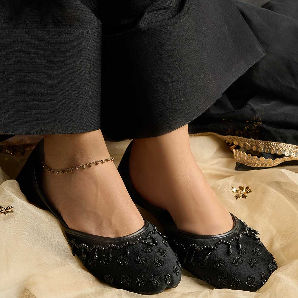 You can refer to our size chart to select your perfect jutti size. If you are confused about what size to order, measure your feet. Draw the outline of your foot on a piece of paper. Measure the distance between your big toe and your heel in centimeters (cms). Refer to the Size Chart and match your feet size to the length (cms) column to figure out your perfect jutti size.