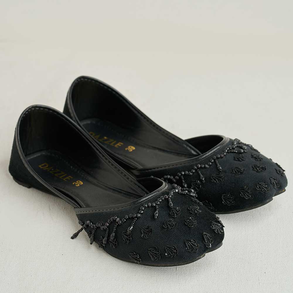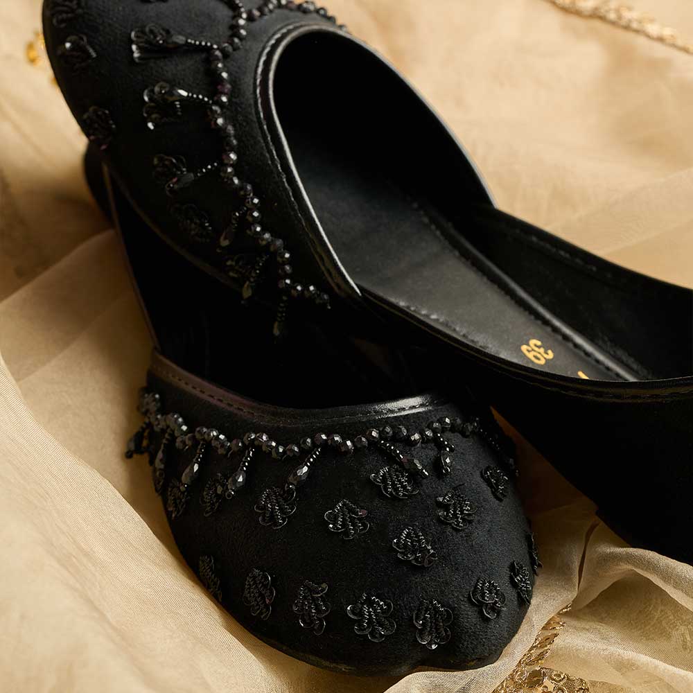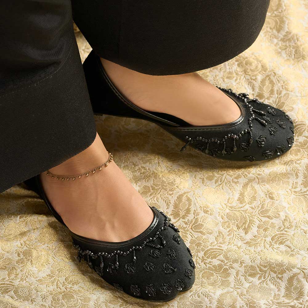 "Kristin" subtle glam in every step. Crafted in soft black velvet, this elegant pair features delicate detailing that adds just the right touch of texture and sophistication to your look — perfect for evening charm or festive flair.