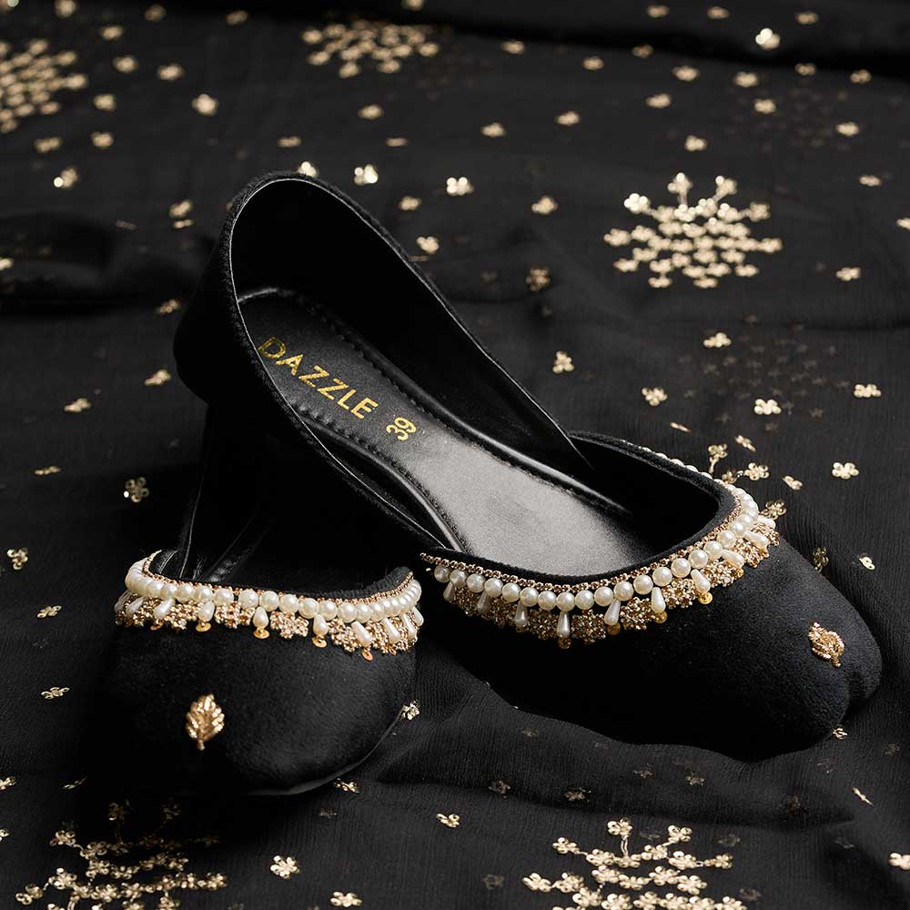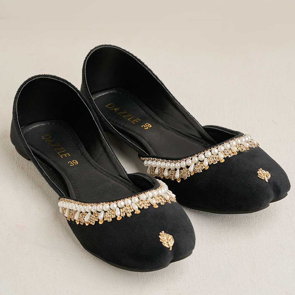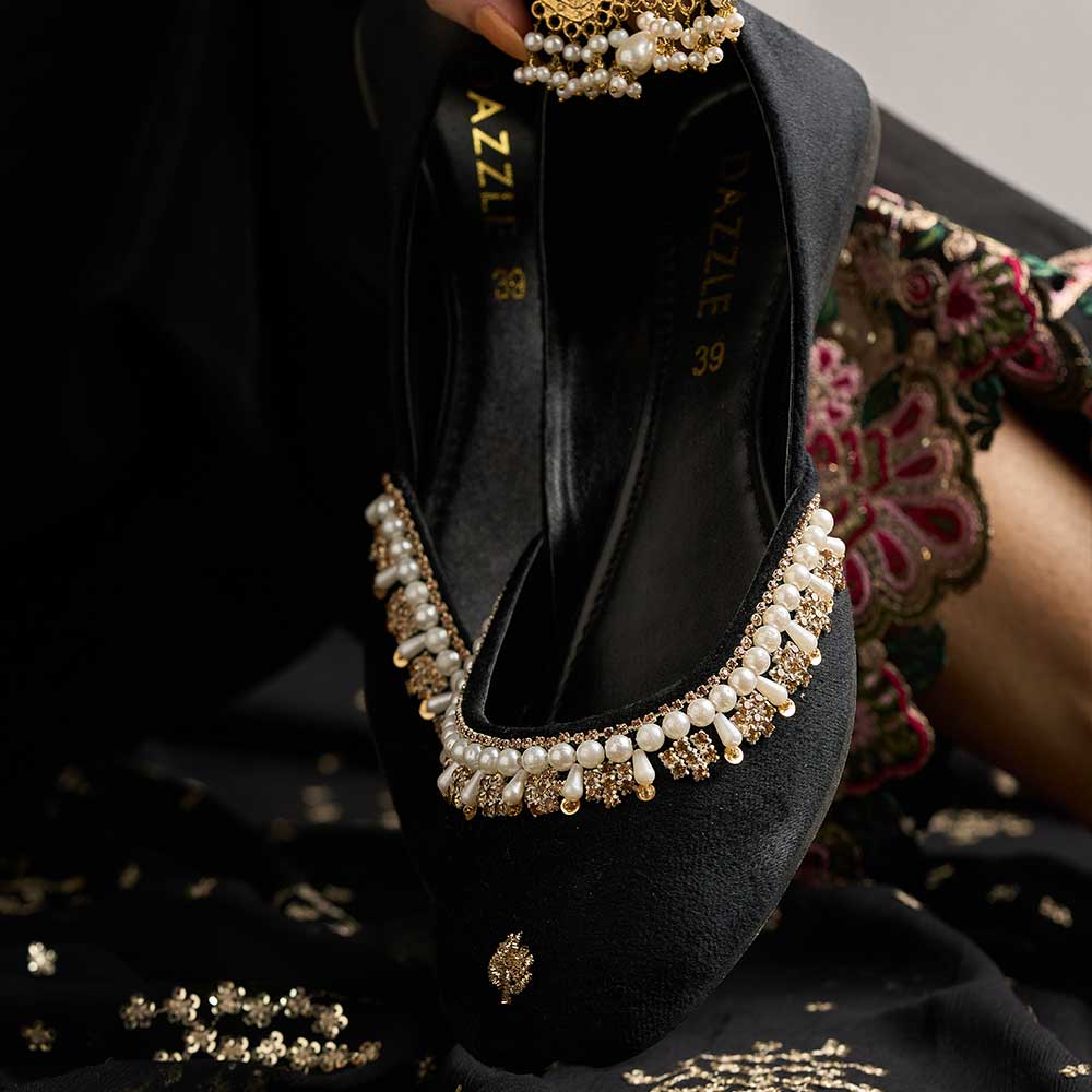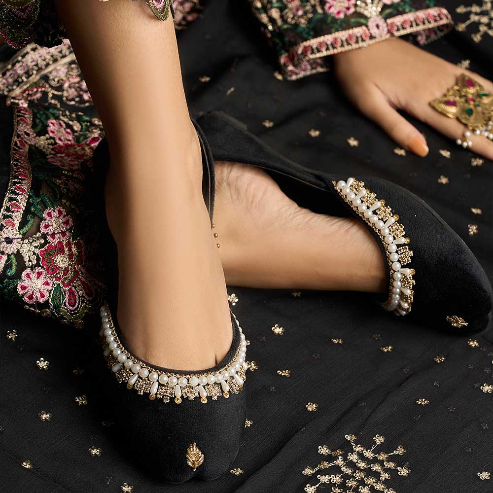 Step into elegance with Tamara khussa — chic, soft, and timeless. Crafted from rich velvet with comfort, lined up with intricate pearl details and handwork. Perfect for adding a touch of sophistication to any look!
