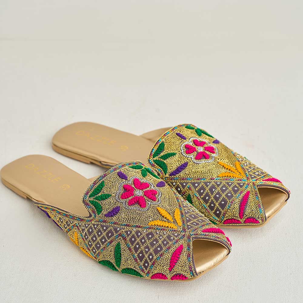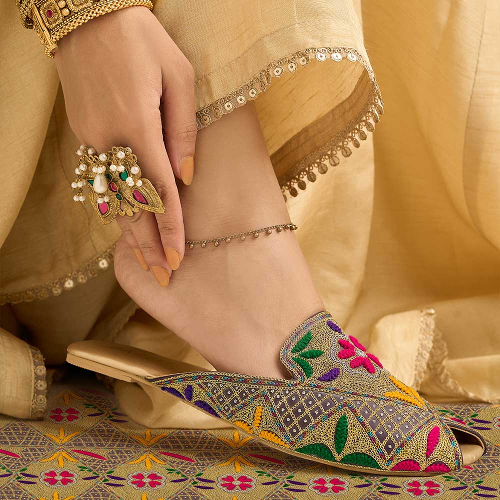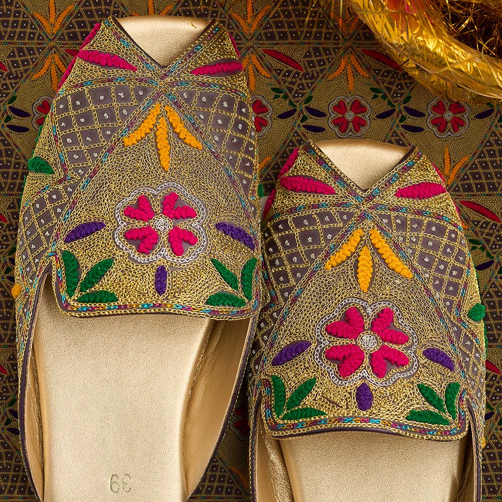 Embrace playful color with the charming Aileen khussa. Featuring a beautiful multi-head and tilla intricate embroidery detail leather upper, these khussa bring a joyful, traditional touch and promise comfort with their leather lining and non-slip sole.