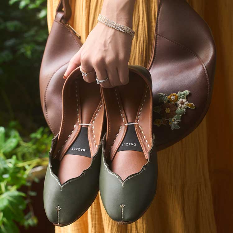The Zarish khussa comes in a graceful design with minimal tilla work on the arch neckline for a refined look. Handmade for comfort and elegance, it's a perfect match for both festive and casual outfits.