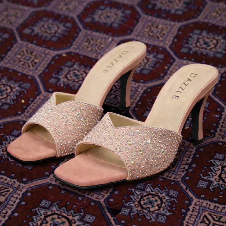 Step into understated glamour with this stylish heel, designed in a warm peach tone. The strap is embellished with delicate crystals, adding a subtle sparkle to every step. Finished with a sleek heel and cushioned footbed, it’s the perfect blend of comfort and elegance, ideal for dinners, festive outings.