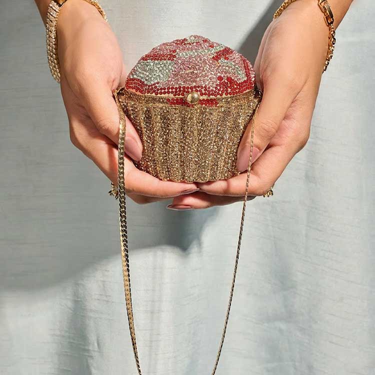 Introducing “Sprinkle,” a charming cupcake-inspired clutch crafted to turn heads with its radiant stone detailing. Petite in size but bold in personality, it pairs playful elegance with striking sparkle — the perfect companion for parties, special celebrations, and any moment that calls for standout style.